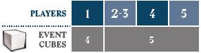15 Add the Event cubes into the bag. Use 4 in a solo game, and 5 for all other player counts.