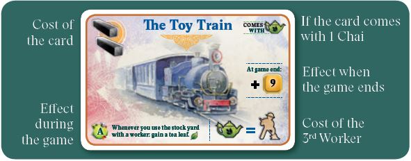 When the railway is completed, the player who has contributed the most to the railway, the building of the towns along the way, and the most auspicious Tea Estates will be declared the winner.