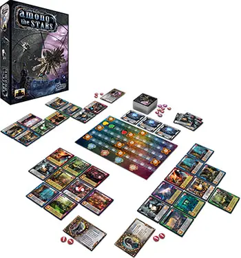 In Among the Stars, each player takes on the role of an alien race trying to build a space station for the newly-formed intergalactic Alliance. They accomplish this goal by drafting Location Cards to be placed in their play area in the best possible way. The player with the most efficient space station after 4 years is the winner!