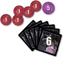 Each player takes a Player Marker and puts it on the Score Board at 0. Every turn, these markers will be moved according to the points gained or lost by the players. Put the Score Board somewhere on the table where it can be easily seen by all players. We recommend having one of the players be responsible for keeping track of everyone's points.