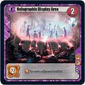 The card she has selected is "Holographic Display Area", and she wants to build it. In order to do so, she must pay the cost and place it adjacent to one existing location: