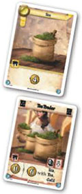 Players desiring more variance and chance in their gameplay may introduce a new product to the game - Tea. The setup for the variant game is the same as for the normal game, but Tea cards are added to the Market deck and the Tea Trader is added as an extra card in the Bazaar.