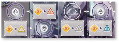 On the Chronobot's turn, roll the Chronobot die. Perform the Action shown above or below the token with that number, then advance the token to the next position.