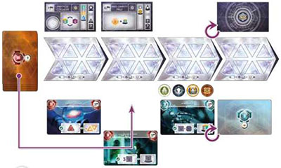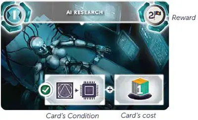 Experiment cards are a major addition to the main game, and symbolize the Paths' efforts to influence the time and effect of the incoming Impact. Each Experiment card consists of a condition, a cost and a Victory Point reward.
