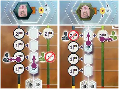 After this movement, if there is a Victory Point value printed next to the spot associated to the Path that moved to the new spot (see the Path symbols in the four corners), that player receives that amount of Victory Points in addition to the claimed Experiment's Victory Point value.