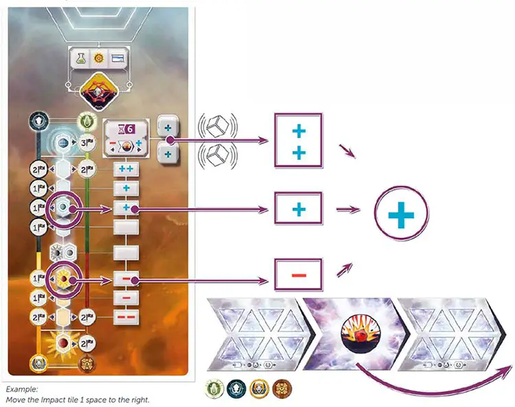 -symbols in total than+, move the Impact tile 1 space to the left on the Timeline track - the Impact will occur one Era earlier. If this would move the Impact tile behind the current Era tile, do not move the Impact tile. -