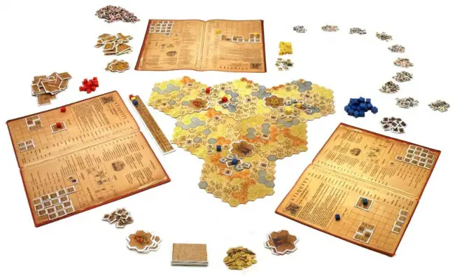 As this is a highly complicated game, we strongly advise you to take a couple of trial rounds in order to learn the basics before playing a full game. In our experience, the game can be finished in 2 hours. However, many starting players may take considerably longer.