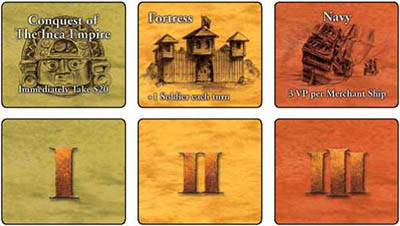 (16 cards) These are used after all of the regions on the board have been discovered. They represent discoveries beyond the early colonies.