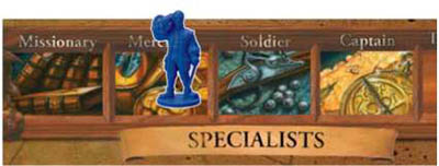 During the Age of Discovery, colonists with special skills were particularly valuable. Each specialist acts as a colonist but also has unique abilities.