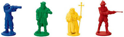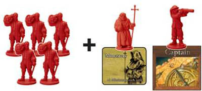 (Captain x 5 per color; Merchant x 5 per color, Missionary x 10 per color, Soldier x 10 per color) . Specialists can perform the same function as the basic colonists but also have unique extra abilities.