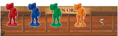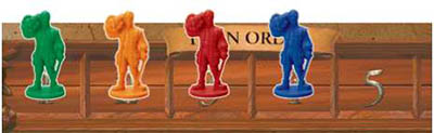 Each Turn Order box is divided by a line in the middle. This allows players to move their piece above or below the line during the colonist/specialist placement phase to indicate that they have acted. This indicator is a good visual cue for the players to easily see whose turn it is to act.