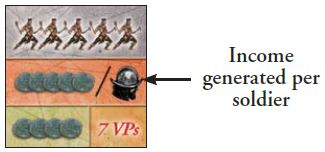 Note: After soldiers generate this money, they are removed from board and placed in the player's supply. They do not stay in the colony.
