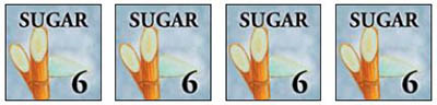 Once acquired, trade goods remain with that player throughout the game and generate income for the owning player at the end of each turn. The amount of the income (in Spanish dollars) is determined by how many and what kind of "sets" are created. Players create "sets" by placing their trade goods counters into groups of three or four. Each counter may only be used in one set.