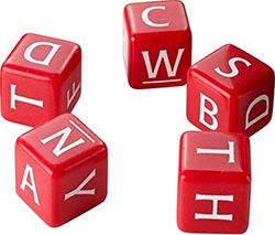 Players grab one of the Red Apple Dice and call out a noun that begins with the letter shown AND that is best described by the word called out by the judge.