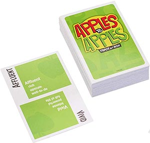 Apples to Apples is the wild, award winning card and party game that provides instant fun for four to ten players! It's as easy as comparing "apples to apples"... just open the box, deal the cards, and you're ready to play!