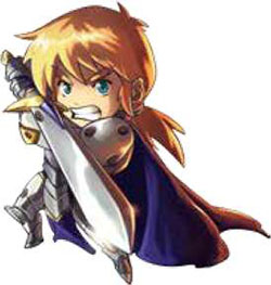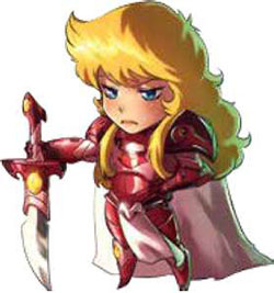 Now a full knight, she spends hour upon hour polishing her own weapons and armor, since lazy squires can't be trusted.