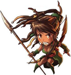 One of the rare Bruentte Elves of the southern Daylight Forests, Kanga's clan has long claimed shared blood with the Burn-It Orcs from ancient days.
