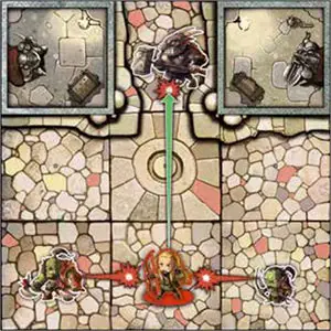 Some monsters perform Melee attacks and other perform Ranged attacks. These are subjected to same parameters of proximity and Line of Sight in order to be executed as a Hero's attack, as well as any Ability the Monster may have. A Monster's attack is always executed by the player to the right of the active player.