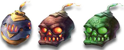 Bombs can be extremely dangerous, which is why each Guild can only possess a single Bomb card at a time. When a Bomb card is used, resolve the attack normally against the targeted Character. If the Attack roll scores any hits, it creates an incendiary minefield around it.