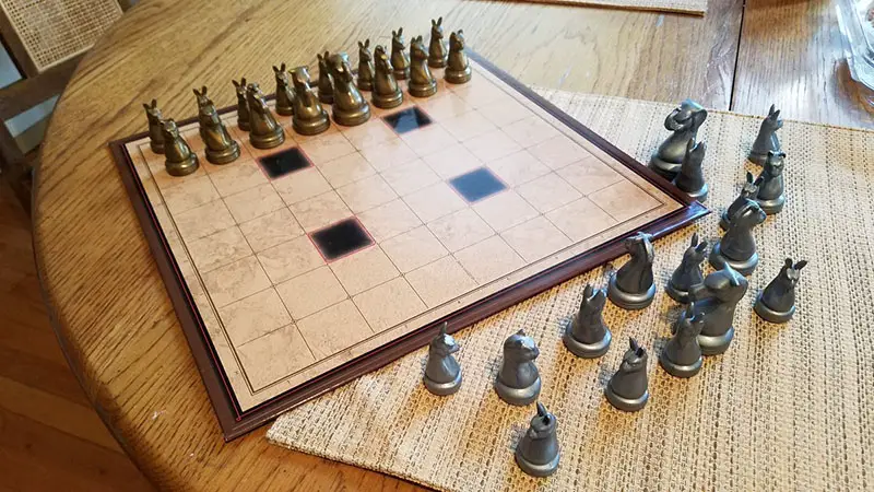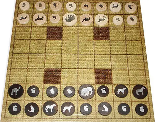 But it is suggested that most of the stronger pieces be placed in front of the weaker rabbits. Once the gold player has finished the silver player sets the pieces on the two closest rows. Again the pieces may be placed in any arrangement within the first two rows.