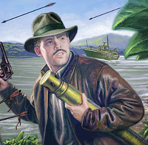 Example: Looking over his cards, Richard finds that he has a Retainer card, which requires an Upkeep action. First, Richard receives $2 for the Retainer. He takes two money tokens from the pile of money tokens in the play area. Richard must then roll a die to see if he keeps or loses the Retainer. Richard is fortunate and keeps the Retainer card for another turn.