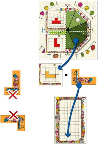 When placing a piece, it must be placed in the same orientation as shown on the card.