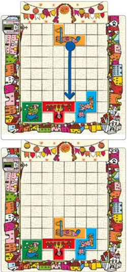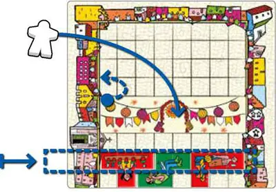 To place a Color Piece, select any card on the octagon. Place the piece shown on that card onto your Street Board, then discard the card.