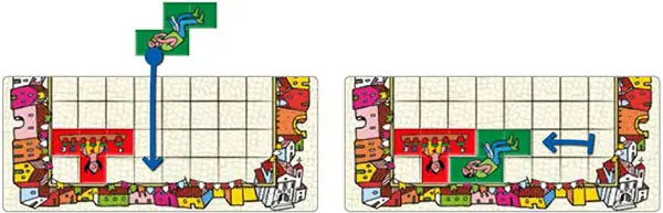 If your piece finishes its movement and there is an available opening in the same row, you may slide the piece sideways to fit into the empty space.