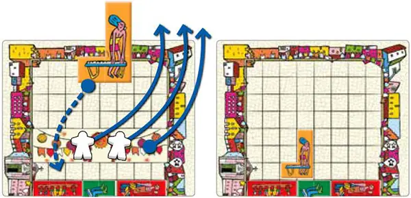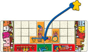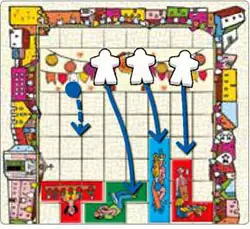 Return your Level Bar and any Visitors on it to the game box. Removed Visitors do NOT count towards your final score, and your Level Bar is out of play for the rest of the game. Then, place the Color Piece.