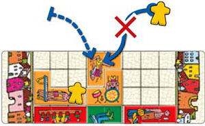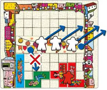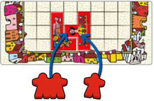 When placing a piece to create a zone of at least 2 orthogonally adjacent, same-color tiles, place a matching- -colored Visitor into that zone.
