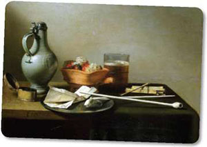 Shuffle all Paintings and deal 5 of them to each player without showing them to other players. An additional random Starting Painting is placed horizontally face-up in the middle of the table. All remaining Paintings are put face-down in a draw deck.