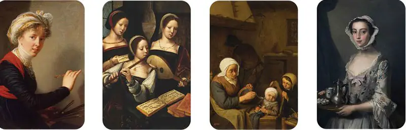 The chosen feature must only refer to elements that can be seen. The fact that something is missing ("no blue elephant on the painting"), doesn't qualify for opening a Gallery. It is not allowed to use interpretations as features ("siblings") or information that relies on the background knowledge about the pictures ("surrealism"). The Painting's title, the artist and the year of production printed on the Painting is for informational purposes only and can't be used for the features.