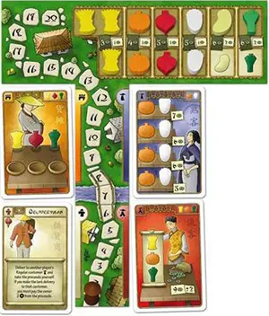 - Action phase (players buy and sell vegetables, then progress on the Path of Prosperity).