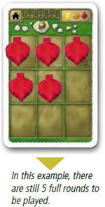 At any time during the game, players can see how many rounds are left by counting the remaining vegetables on their Home field.