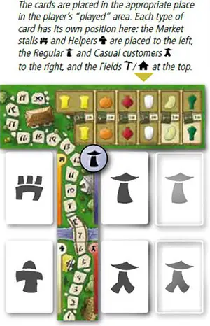 Each place in the Shop is reserved for a specific type of vegetable. A player can only sell vegetables if he has appropriate free space(s) in his Shop.