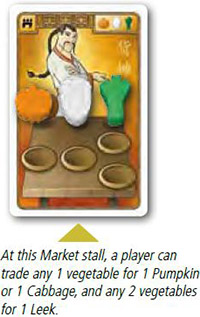 The player trades 1 or 2 vegetables of his choice from his cart for 1 vegetable from a market stall.