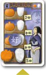Each Regular customer card contains eight empty spaces; the two vegetables shown will be delivered here for four rounds. Regular customers want to receive these two vegetables exactly once in each round, starting with the round in which the card was played.