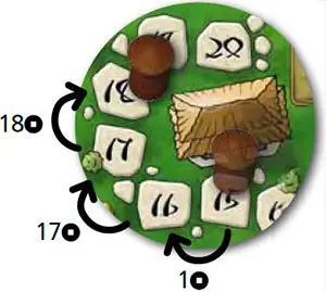 At the end of their turns, players must store their vegetables and may move their Scoring marker. The Starting player begins, then the Second player. In a three-player game, the player with no Starting player token is third to play.