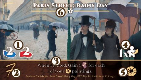 1 Paint Cost - 2 Victory Point Value - 3 Painting Power - 4 Students Returned 5 Painting Category - 6 Masterpiece Symbol