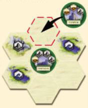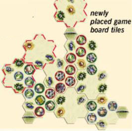 Then, he draws a game board tile from the stack and adds it to the game board. He may place the tile in any onentation he chooses.