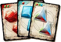 Each player starts with the basic cards of their house, which they can add to throughout the game. In addition to acquiring newer, stronger cards, players will also need to gather gemstones to activate them.
