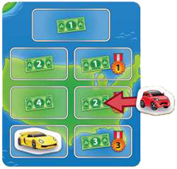 When all players have withdrawn, the sales phase begins. In this phase, players may sell their cars for money and/or victory points.