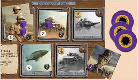 The cost of each Military Unit is shown in the corresponding- ing box of your Expeditionary Force, and on the main board.