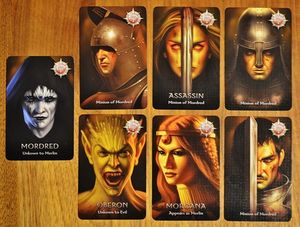 The Evil team consists of basic minions including the Assassin. Evil also has three unique characters: Mordred who stays invisible to Merlin, Morgana (will be shown to Percival as a possible Merlin) and Oberon (the stays unknown to the other members of the evil team).