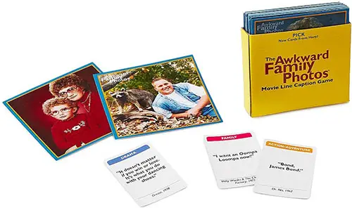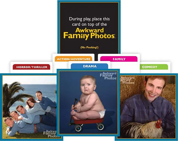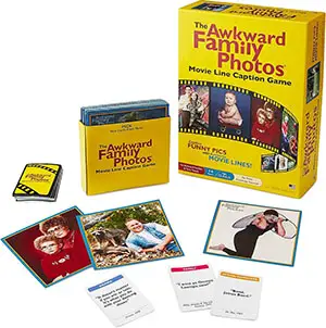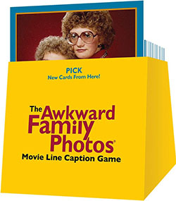Be the first player to win 4-5 rounds (depending on the number of players) by playing movie line cards that best caption the Awkward Family Photos in play.