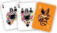 Take a moment to identify the different cards that make up the main deck. Note that the majority are potion cards (valued 1-7). In addition, there are three types of spell cards: Pelicans, Baba Yaga's Cats, and Baba Yaga's Lost Wand.