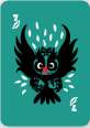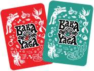 The back side of the Baba Yaga cards is red, the back side of the Owl cards is teal.