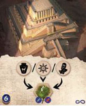 ![]() Adam places a Civil Servant next to the Ziggurat and receives 3 points as there are 3 Ziggurats with his tokens next to them. |