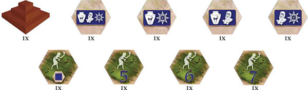 Display Ziggurat Cards numbers 1-7 at the side of the board (Cards 8 and 9 are only used in the Game Variant).