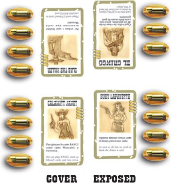 At the beginning of any turn, after dealing with such cards as Jail and Dynamite and before Phase i, the active player chooses one character to be exposed and the other to stay cover. In order to do this, push the exposed character towards the center.